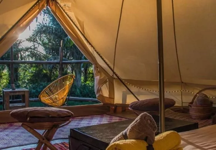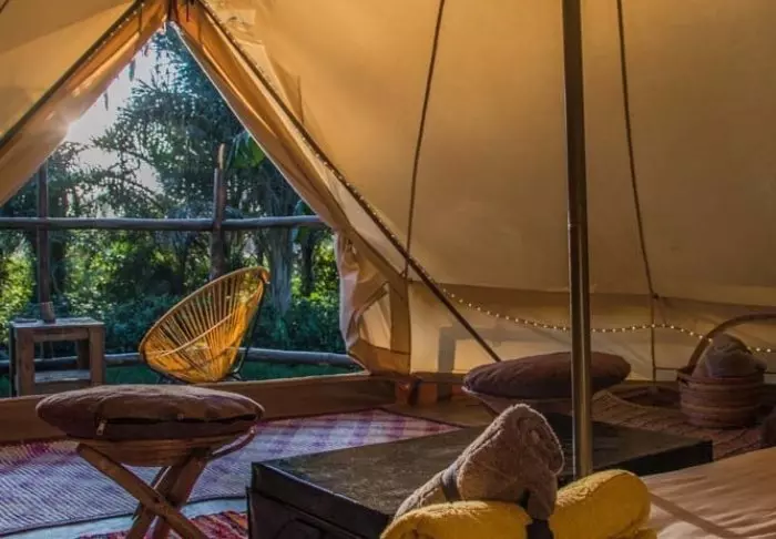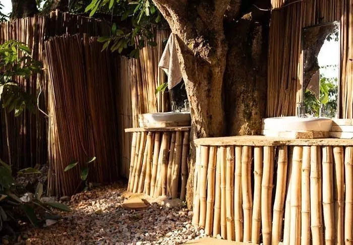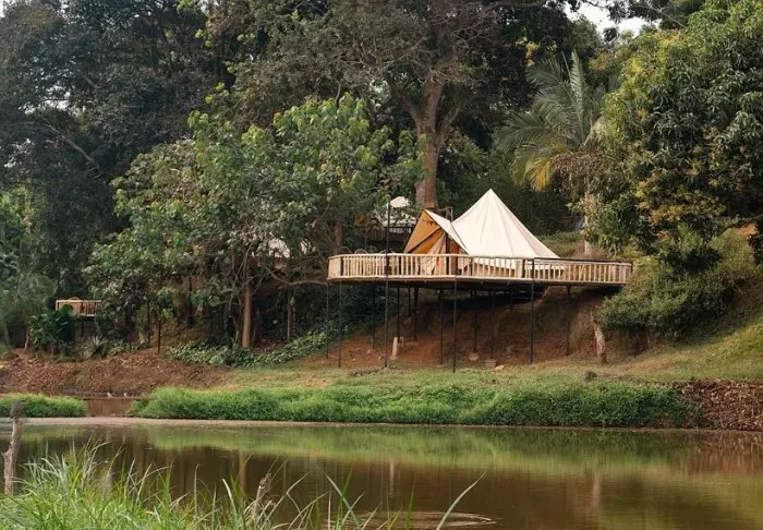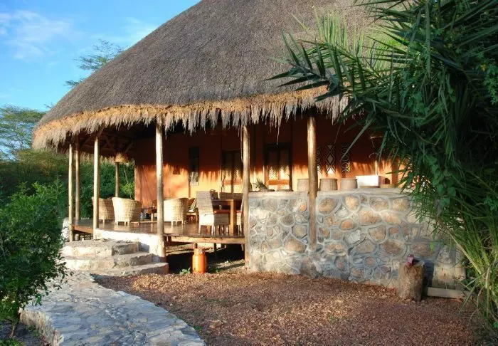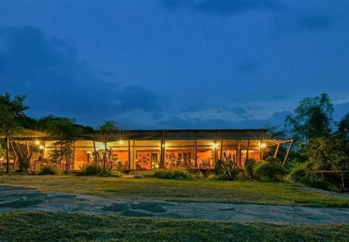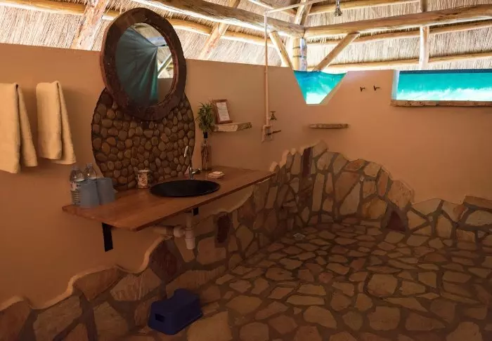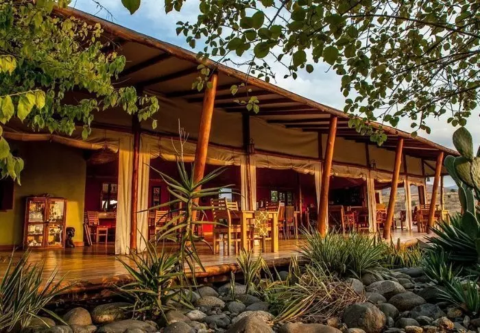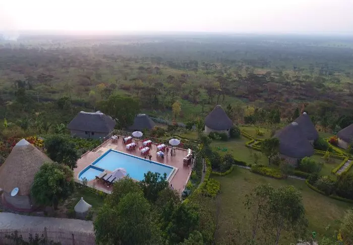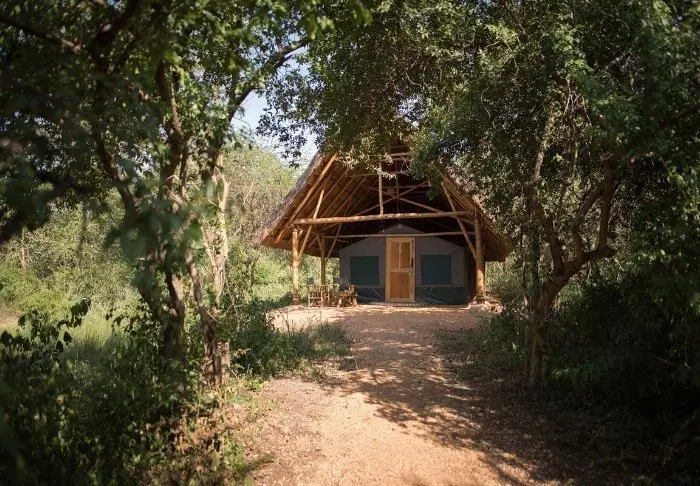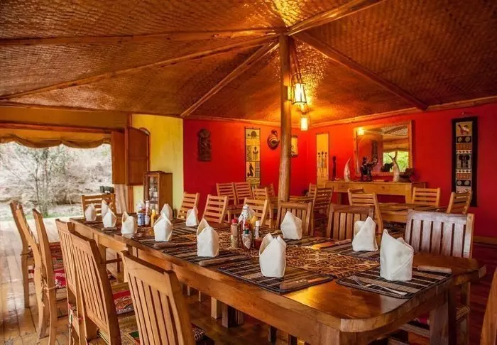 Die Lodge besteht aus Hütten und Zelten, die jeweils ansprechend mit eigenem Badezimmer und Veranda ausgestattet sind. Für den Bau der Lodge wurden ausschließlich lokale Materialien verwendet, und sie wurde von einheimischen Handwerkern errichtet, um sicherzustellen, dass das Einkommen den lokalen Gemeinden zugutekommt.
