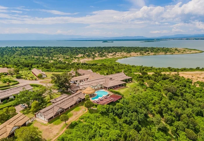 Die Mweya Safari Lodge liegt wunderschön im Queen-Elizabeth-Nationalpark in Uganda und bietet einen atemberaubenden Blick auf den majestätischen Kazinga-Kanal und die Rwenzori-Berge – eine unvergessliche Kulisse während Ihres Aufenthalts.