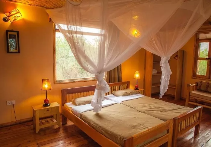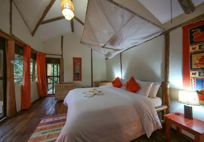 Die Lodge verfügt über 12 Zimmer, die einfach, aber gemütlich eingerichtet sind und Ihnen und Ihrem Gepäck ausreichend Platz bieten. Jedes Zimmer ist mit einem privaten Badezimmer und einer Toilette ausgestattet, und Moskitonetze sind um die Betten gespannt.