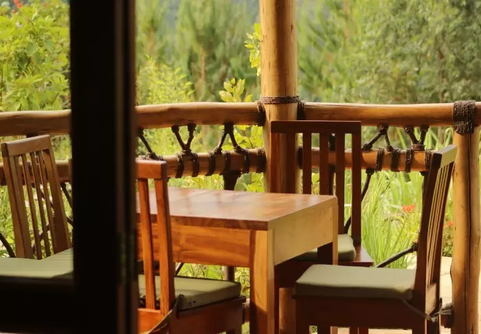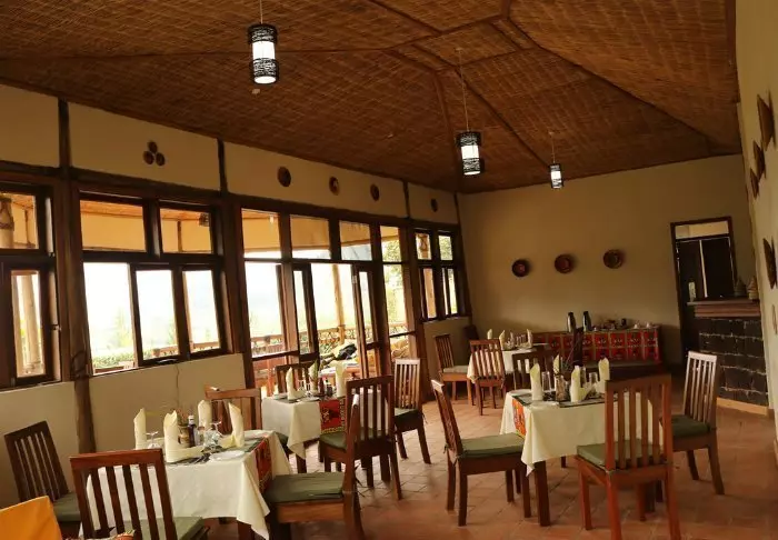 Das Hauptgebäude mit dem Restaurant, die Bar und der Loungebereich sind oben am Hügel und bieten Ihnen nicht nur eine atemberaubende Aussicht, sondern auch viel frische Luft vom Wald und dessen Bäume, während Sie Ihre Mahlzeit einnehmen. Vom Hauptgebäude aus verläuft ein Weg direkt zum Rushaga-Tor und weiter in den Nationalpark.