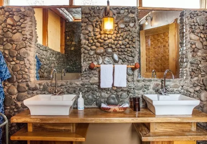 Die Lodge wurde von ansässigen Handwerkern ausschließlich mit regionalen Materialien errichtet, um die Lodge so der Umgebung anzupassen. Darüber hinaus ist der Großteil der Möbel und Dekorationen Handarbeit von Einheimischen.