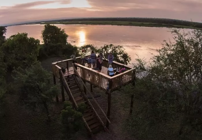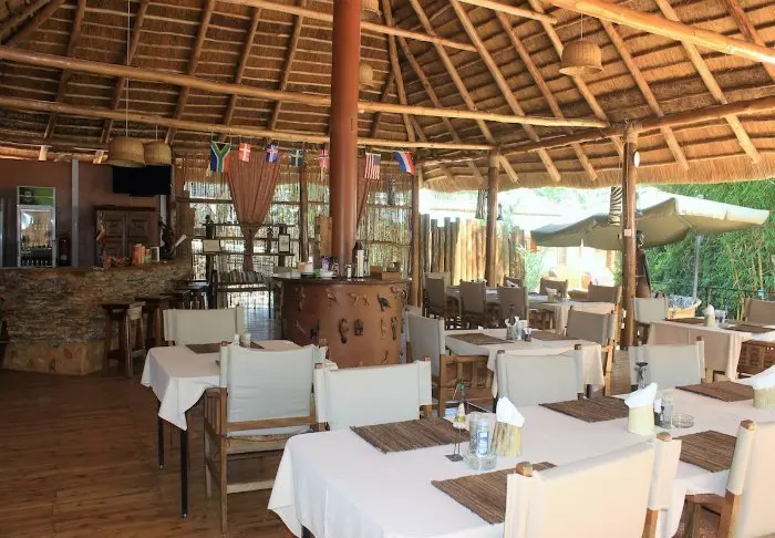 Auch im gemütlichen, mit Stroh gedeckten Restaurant oben am Berg können Sie die prächtigen Tiere am Wasserloch beobachten und die atemberaubenden Sonnenuntergänge über dem Park genießen, während Sie leckere Gerichte aus regionalen Zutaten sowie Zutaten aus dem eigenen Garten der Lodge einnehmen. Eine leichte Brise vom Kacherasee macht das Restaurant außerdem zum optimalen Ort für Abkühlung nach einem heißen Tag.