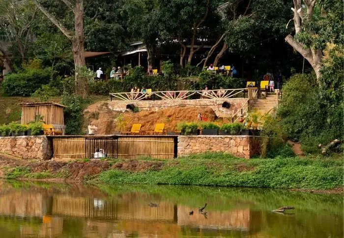 Sowohl vom Pool als auch vom Restaurant aus können Sie atemberaubende Ausblicke auf den Nil genießen, mit Papyrusinseln und Gruppen von Flusspferden. Um den Poolbereich herum steht WLAN zur Verfügung. Die Familie, der die Lodge gehört, hat bewusst entschieden, im Restaurant kein WLAN anzubieten, da Gäste die Aussicht genießen und sich stattdessen unterhalten sollen.
