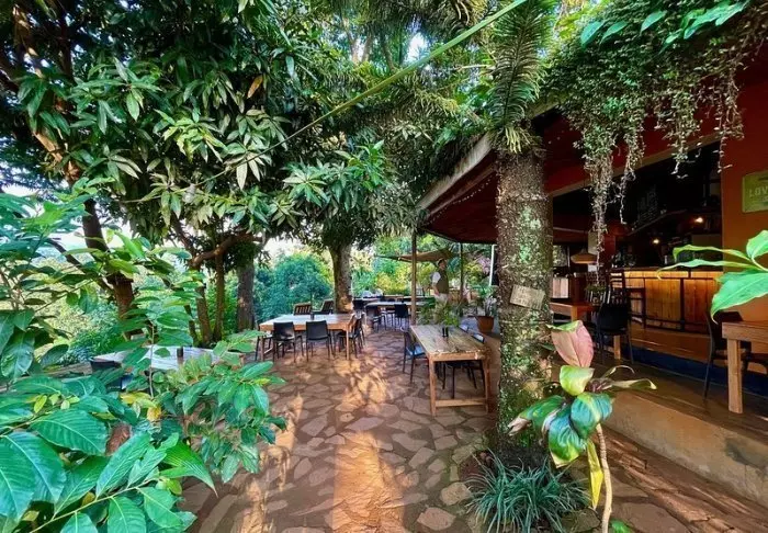 Der Restaurant- und Lounge-Bereich ist teilweise offen, sodass Sie sich nie weit von der Natur entfernt fühlen. Mit etwas Glück können Sie vielleicht die Antilopen entdecken, die gelegentlich im Garten grasen.