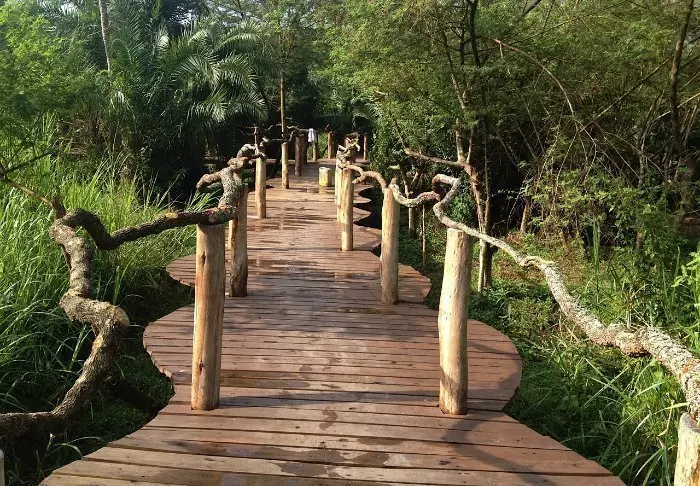 An der Grenze zum Ishasha-Gebiet im Queen-Elisabeth-Nationalpark befindet sich die malerische Enjojo Lodge mitten in grüner Natur, umgeben von Palmen, Grünflächen und einem Akazienwäldchen mit dichtem Bewuchs.