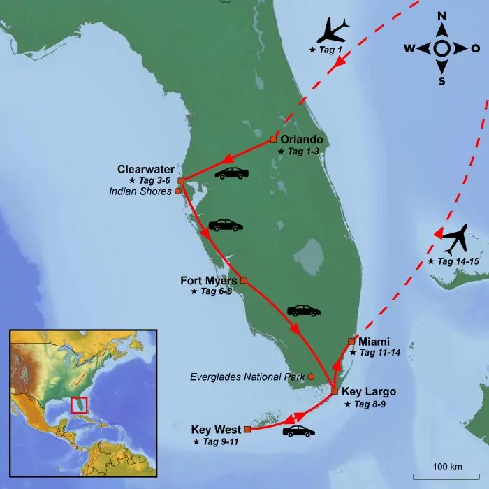 Dieses Selbstfahrer-Abenteuer führt Sie zu den absoluten Höhepunkten Floridas auf einer ausgewogenen Reiseroute, die viel Zeit zum Entspannen und zum Erkunden der örtlichen Gegenden bietet.