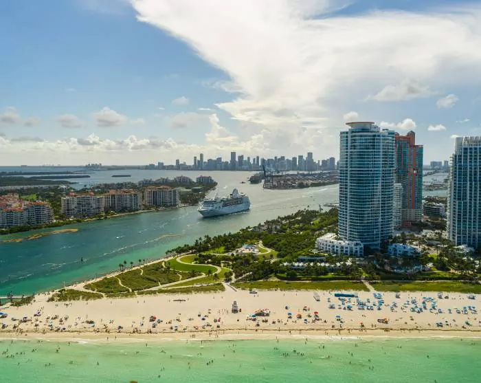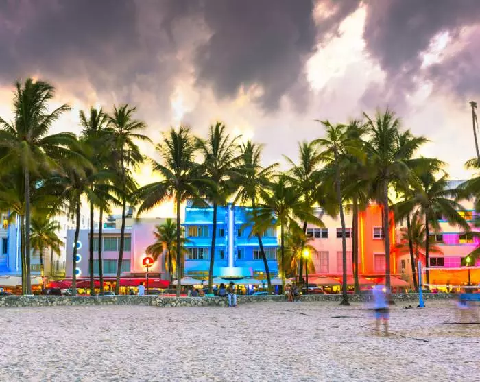 Sie werden sofort wissen, dass Sie sich Miami nähern, wenn der weite Blick auf den Ozean von der Stadtlandschaft mit ihren Hochhäusern, großen Autos und Kreuzfahrtschiffen abgelöst wird. Sie wohnen in Miami Beach, das für seine farbenfrohen Art-déco-Häuser, seinen Strand und die Geschäfte entlang der berühmten Collins Avenue bekannt ist.