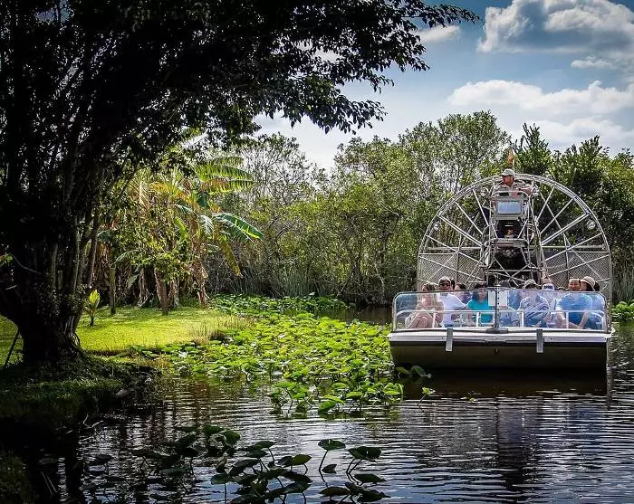 Im Everglades-Nationalpark werden Sie den Rausch der Aufregung spüren, wenn Sie in den ikonischen Sumpfbooten fast über dem Wasser schweben, während Sie zusammen mit Ihrem Guide und Ihren Mitfahrern dahinbrausen. Die ca. 30-minütige Fahrt mit Guide gibt Ihnen einen Einblick in die Flora und Fauna des Ökosystems in dem mehr als 6.000 km2 großen Nationalpark. Der Park ist die Heimat von Alligatoren, Krokodilen, Schwarzbären, Fröschen, Schlangen und mehr als 360 Vogelarten.