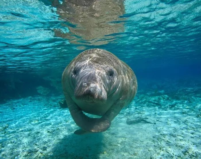 Der heutige Tag bildet da keine Ausnahme, und Sie können einen Zwischenstopp in der kleinen Stadt Crystal River einlegen, der Heimat der großen und ruhigen Rundschwanzseekühe. Wenn die Wassertemperaturen im Golf von Mexiko in den Wintermonaten sinken, schwimmen Hunderte von Seekühen zu den heißen Quellen von Three Sisters Springs. Hier können Sie die großen Tiere vom Rand der mehr als 3 km langen Pfade aus beobachten, wie sie langsam an der Oberfläche schwimmen, und zu bestimmten Tageszeiten ist es sogar möglich, ein Kajak zu mieten und in ihre Nähe zu paddeln (muss vor Ort gebucht werden). Die Seekühe können an verschiedenen Orten in Florida beobachtet werden, aber in Three Sisters Springs sind sie normalerweise in Herden versammelt und leicht zu sehen.