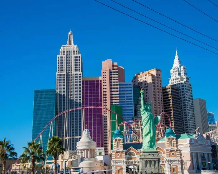 Wenn Sie anschließend nach Las Vegas fahren, wird der Wüstenstaub von riesigen Themenhotels abgelöst, die sich am knapp 7 km langen Las Vegas Boulevard – auch The Strip genannt – aneinander drängen.