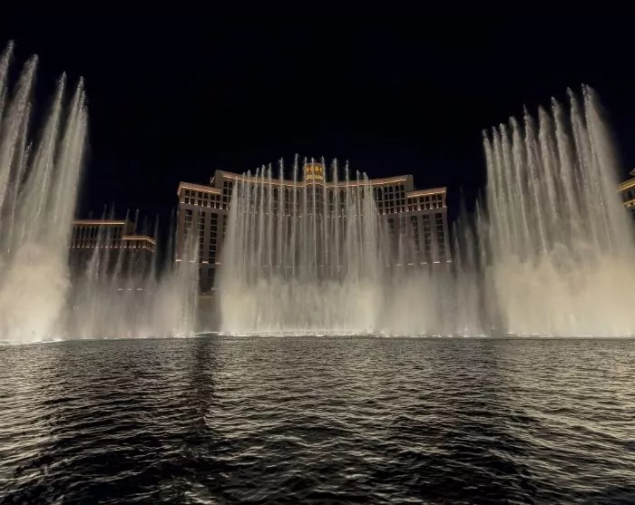 Nach einem Tag Fahrzeit benötigen Sie vielleicht eine Pause; einmal im Zimmer angekommen, könnte eine Abkühlung im Pool ideal sein, um sich zu entspannen. Wenn Sie ausgehen möchten, beenden Sie Ihren Tag mit einem Abendessen in einem der vielen Restaurants von Las Vegas und genießen Sie die berühmte Wassershow vor dem Bellagio Hotel. Seit seiner Eröffnung 1998 unterhält dieses beeindruckende Wasserspiel, begleitet von klassischer Musik, vorbeigehende Zuschauer.