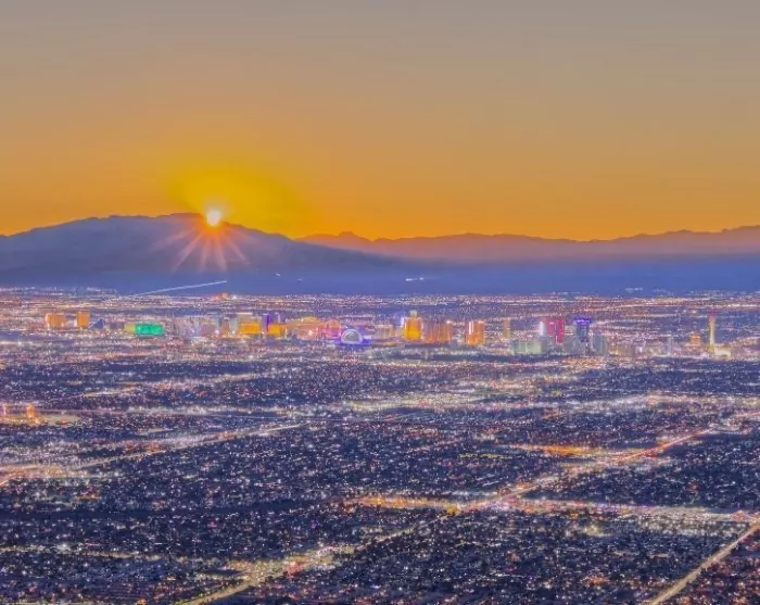Hier können Sie eine Mahlzeit mit Panoramablick über die Mojave-Wüste genießen und die Millionen Lichter beobachten, die von den Themenhotels der Stadt funkeln.