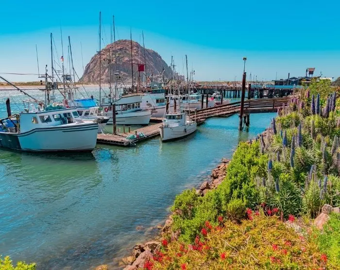 Weiter südlich passieren Sie die charmante Küstenstadt Morro Bay, wo das Tempo entspannt ist und Seelöwen zwischen Kajaks und Fischerbooten herumtollen. Das Wahrzeichen der Stadt, der massive Morro Rock, ist ein unvermeidlicher Anblick, wenn Sie über die Hauptstraße ankommen. Sie können bis ganz nah an den Morro Rock fahren, Ihre Beine ausstrecken und nachschauen, ob Sie die vielen Seeotter entdecken können, die hier in der Bucht von Morro Bay leben.