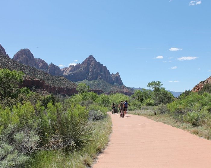 Entdecken Sie die wunderschöne Landschaft von Zion in Ihrem eigenen Tempo mit dem Fahrrad. Auf diese Weise können Sie unterwegs anhalten, wann immer Sie möchten. Und das wird wahrscheinlich häufig vorkommen, denn Zion bietet an jeder Ecke eine neue, atemberaubend schöne Aussicht. Mit dem Fahrrad erleben Sie die Natur und das vielfältige Tierreich hautnah. Und Sie umgehen auf diese Weise die langen Schlangen an den Shuttlebussen.
