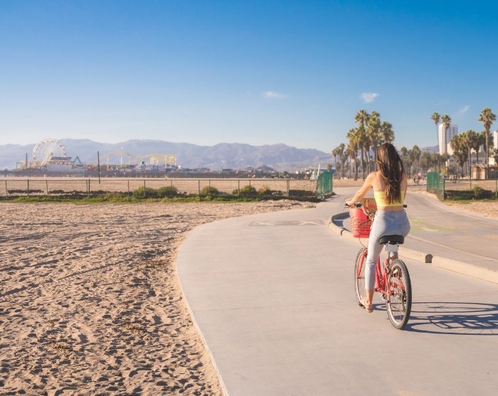 Die kalifornische Küste ist wirklich außergewöhnlich. Auf der Strecke zwischen Santa Monica und Venice verläuft ein insgesamt 36 km langer Radweg. So weit fahren Sie bei diesem Ausflug allerdings nicht. Sie fahren eine kürzere, rund 13 Kilometer lange Strecke. Gemeinsam mit Ihrem einheimischen Guide und eventuellen weiteren Teilnehmerinnen und Teilnehmern geht es mit dem Rad vom Strand in Santa Monica bis zu den historischen Venedig-Kanälen Marina Del Rey und weiteren Orten im Gebiet um Venice Beach.
