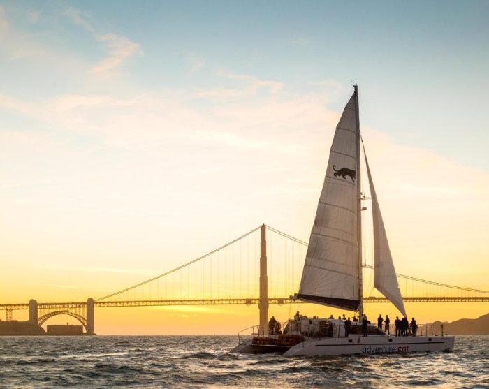 Stellen Sie sich vor, Sie stehen auf einem Katamaran, in der Bucht von San Francisco, und setzen Kurs auf die berühmte Golden Gate Bridge. Sie beobachten, wie die Lichter am Festland zu funkeln beginnen, als es langsam dunkel wird. Genau das wartet bei diesem Ausflug auf Sie.