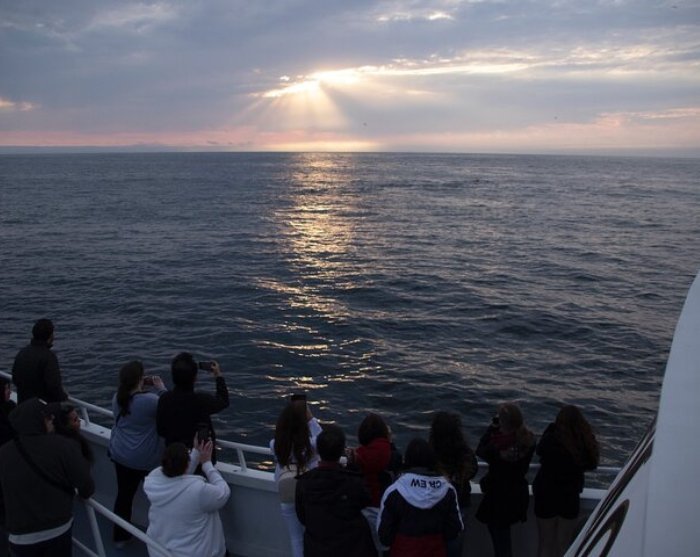 Für diesen Ausflug gehen Sie an Bord eines der größten Schiffe der Monterey-Flotte, das 110 Fuß lang ist. Sie können es sich sowohl an Deck als auch drinnen im beheizten Aufenthaltsraum gemütlich machen. An Bord können Sie sich für ein Upgrade auf das VIP-Deck ganz oben entscheiden (gegen Bezahlung – solange es freie Plätze gibt). Und es gibt Toiletten an Bord.