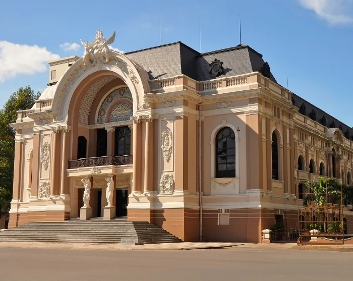 Die Tour führt weiter vorbei am Opernhaus von Saigon, einem architektonischen Meisterwerk aus dem Jahr 1901 und lebenden Symbol des Kulturerbes der Stadt. Das Opernhaus kann auf eine bemerkenswerte Vergangenheit zurückblicken: es wurde als Schutzraum genutzt und war später Sitz des Unterhauses des südvietnamesischen Parlaments.