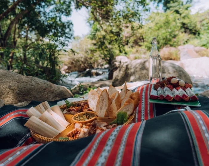 Anschließend machen Sie eine interessante Wanderung zum Wasserfall Bim Bip und genießen unterwegs die herrlichen Naturlandschaften. Bei der Ankunft erwartet Sie ein Picknick-Mittagessen mit traditionellen, in Bananenblätter eingepackten Gerichten – und vielleicht sogar ein erfrischendes Bad im natürlichen Pool des Wasserfalls.